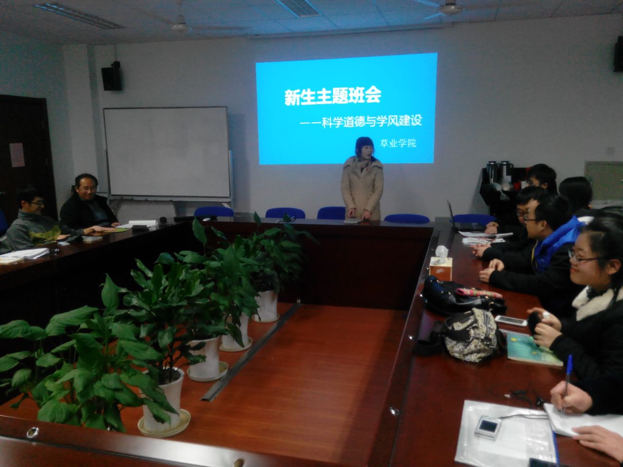 12月16日晚8点,2014级草业科学研究生班级在学院会议室召开了主题为“科学道德与学风建设”的班会。班会由团支书王茜主持,草业科学2014级研究生班主任刘信宝老师以及所有新生同学参加了本次班会。