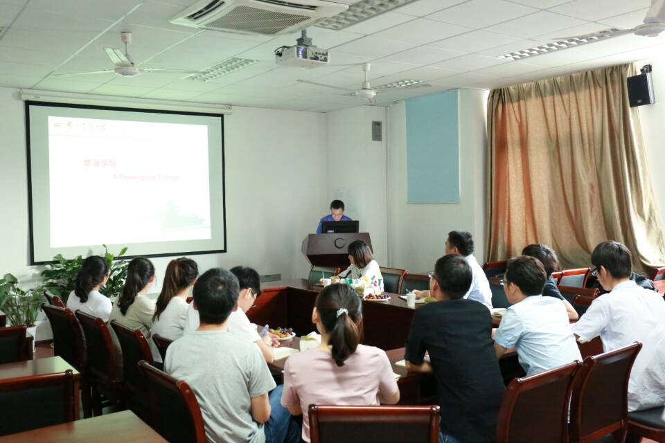 指导绿肥育种工作,并组织召开了座谈会。学院党总支书记李俊龙、院长郭振飞等热情接待曹卫东一行。