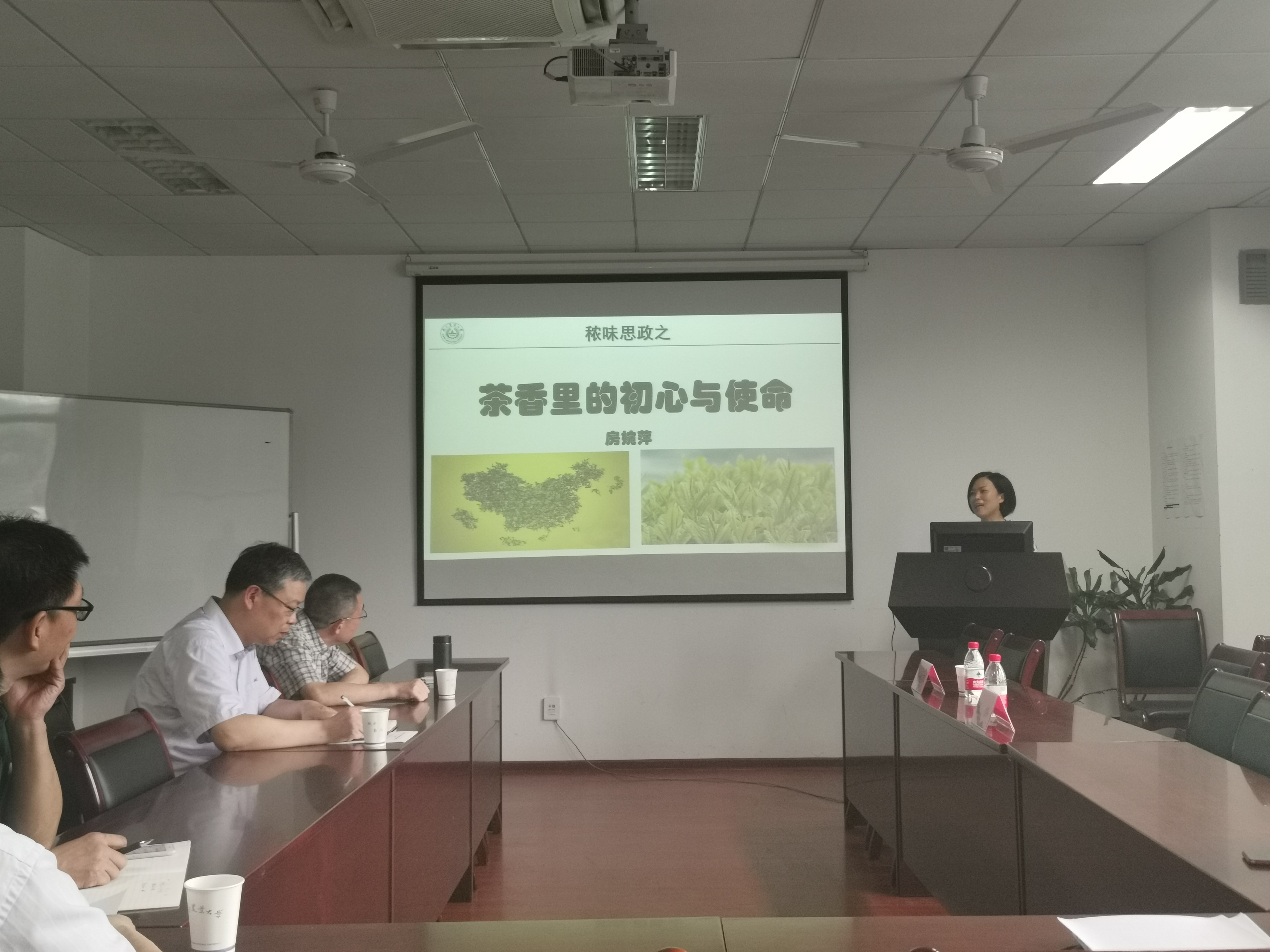 园艺学院房婉萍教授作了题为“秾味思政之茶香里的初心与使命”的教学示范,从介绍茶的历史到如今茶的作用与地位,指出茶叶是中国文化自信的新名片;从介绍茶的制作进而延伸到南京雨花茶的由来,突出茶叶制作过程中体现的工匠精神;从介绍茶叶冲泡方法到类比茶味人生,讲述茶学知识中体现的奋斗之歌。房老师的教学示范中,将每一个知识点很自然的与专业认知教育、思政教育进行结合。在学院教师提问与交流过程中,房老师对申报书组织、课程教案撰写等方面进行了解答。