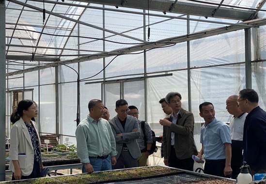 座谈会结束后,李俊龙一行赴宁波创越农业科技公司温室草坪草生产现场进行了参观考察,对现有设施条件的更新改造、小范围的无土草坪种植提出了指导意见。双方还就未来的合作模式及方向达成了初步的共识。
