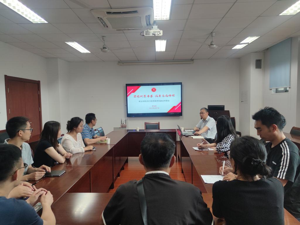 举办师德师风专题教育宣讲会,全体中青年教师参加了宣讲会。学院党委书记李俊龙作题为“坚持以案为鉴,涵养高尚师德”专题宣讲报告。