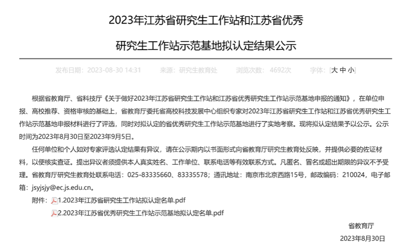 近日,江苏省教育厅、江苏省科技厅公布了2023年江苏省研究生工作站名单,H动漫 合作单位江苏省沿海开发(东台)有限公司顺利入选。江苏省沿海开发(东台)有限公司于2010年10月22日在东台市市场监督管理局登记成立。2020入选“国家级水产健康养殖示范场(第十四批)名单”。2022年1月,入选2019-2021年度江苏省文明单位候选名单。共建数年来,校企共同为研究院研究生实践教育工作的开展提供了强有力的条件保障。