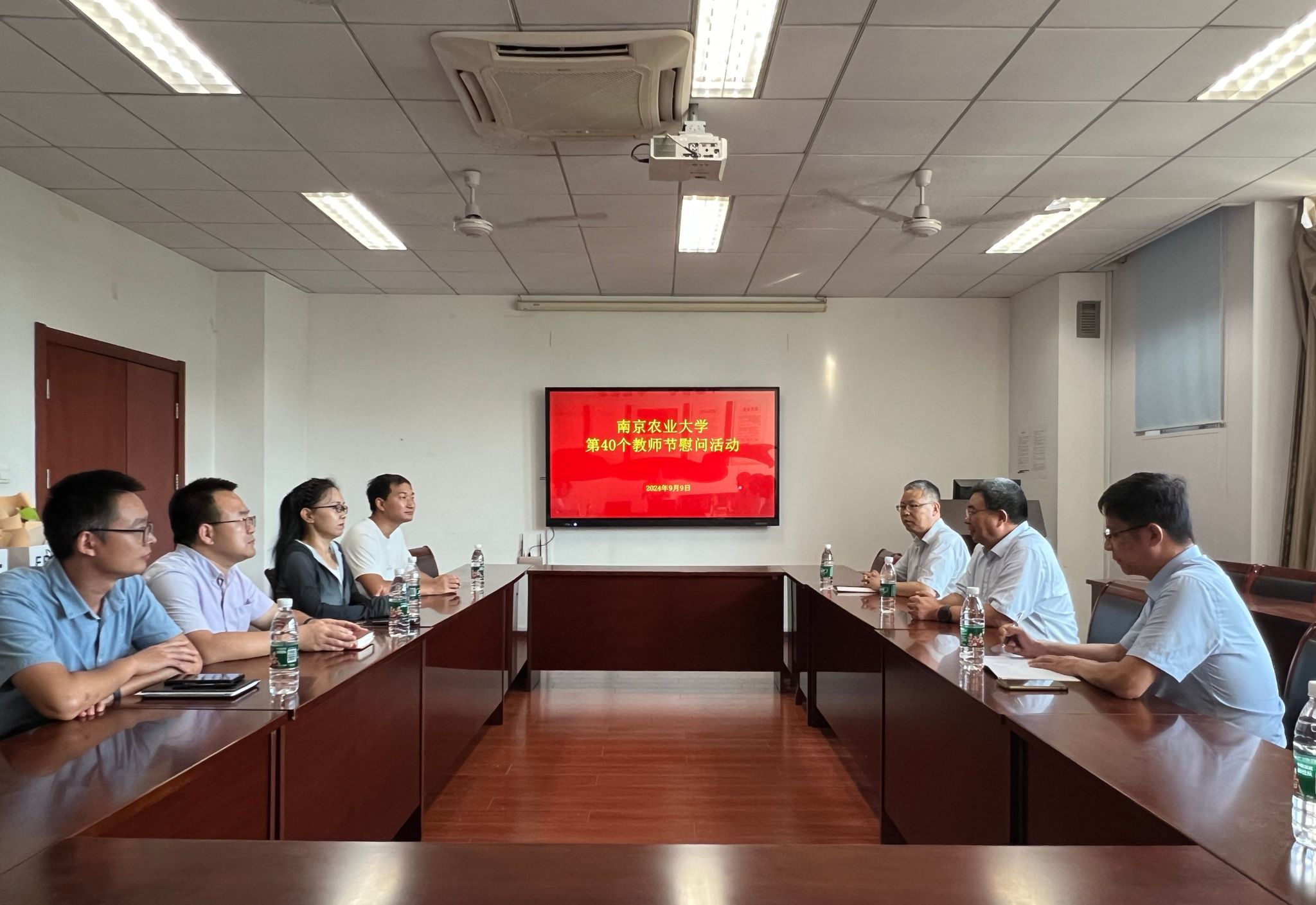 9月9日,在第40个教师节到来之际,校党委常委、副校长董维春,学校机关党委常务副书记、党委办公室副主任、统战部副部长丁广龙到学院慰问教师代表并座谈,草业学院党委书记李俊龙主持座谈会。教师代表原现军教授、刘洪伟教授、任海彦教授、杨波副研究员参加了座谈交流。
