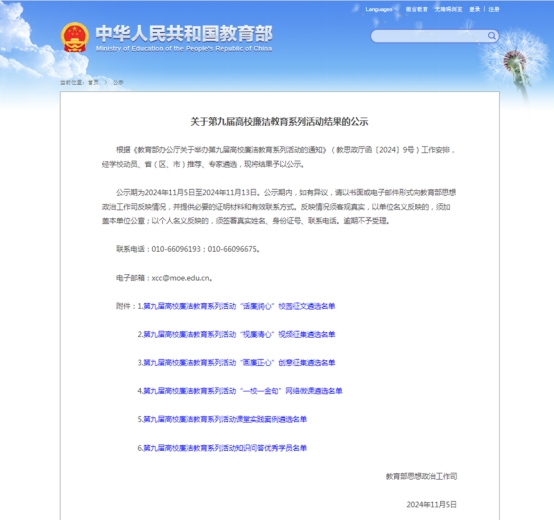 近日,教育部第九届高校廉洁教育系列活动“一校一金句”网络微课遴选名单公布,H动漫