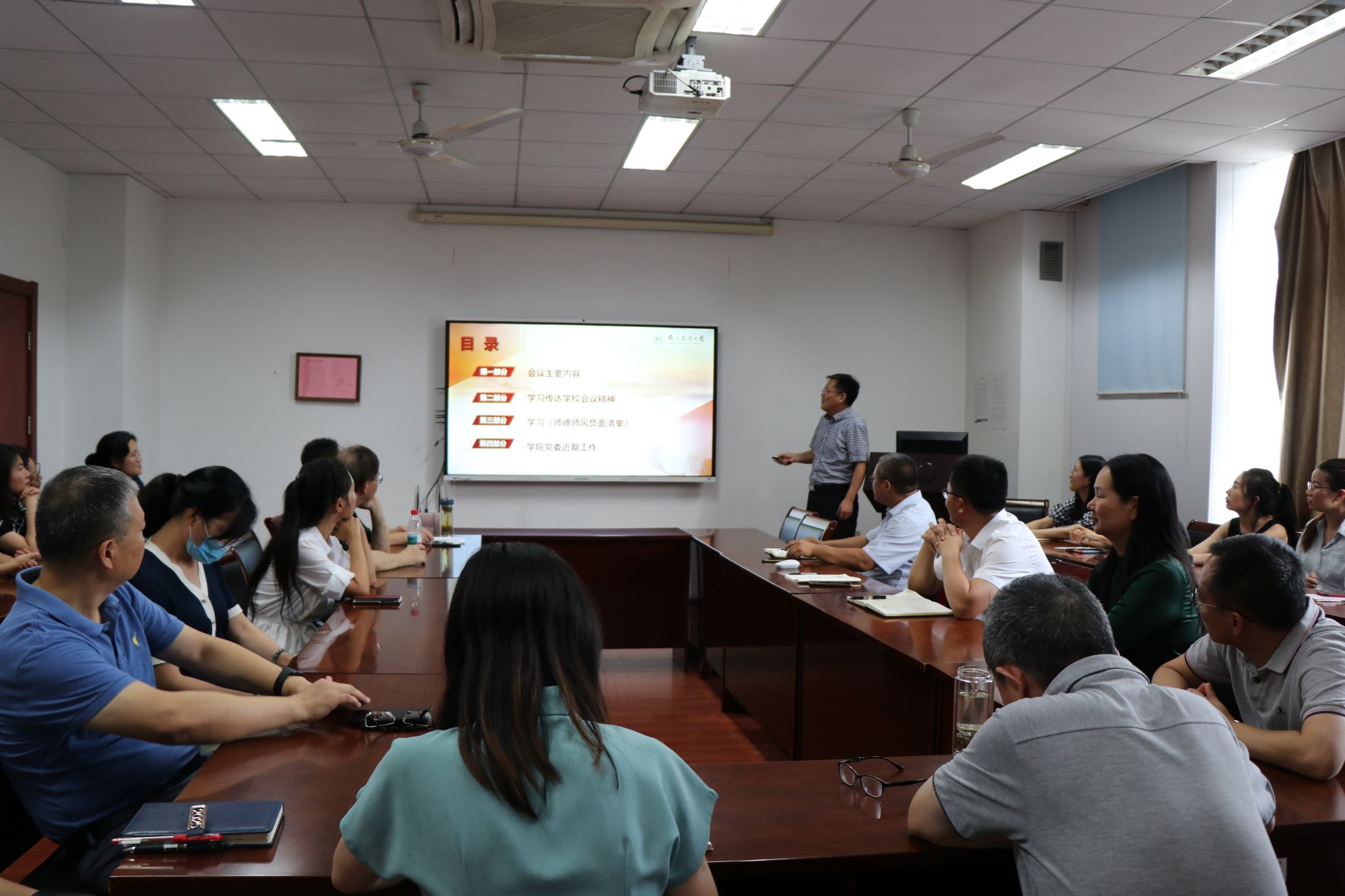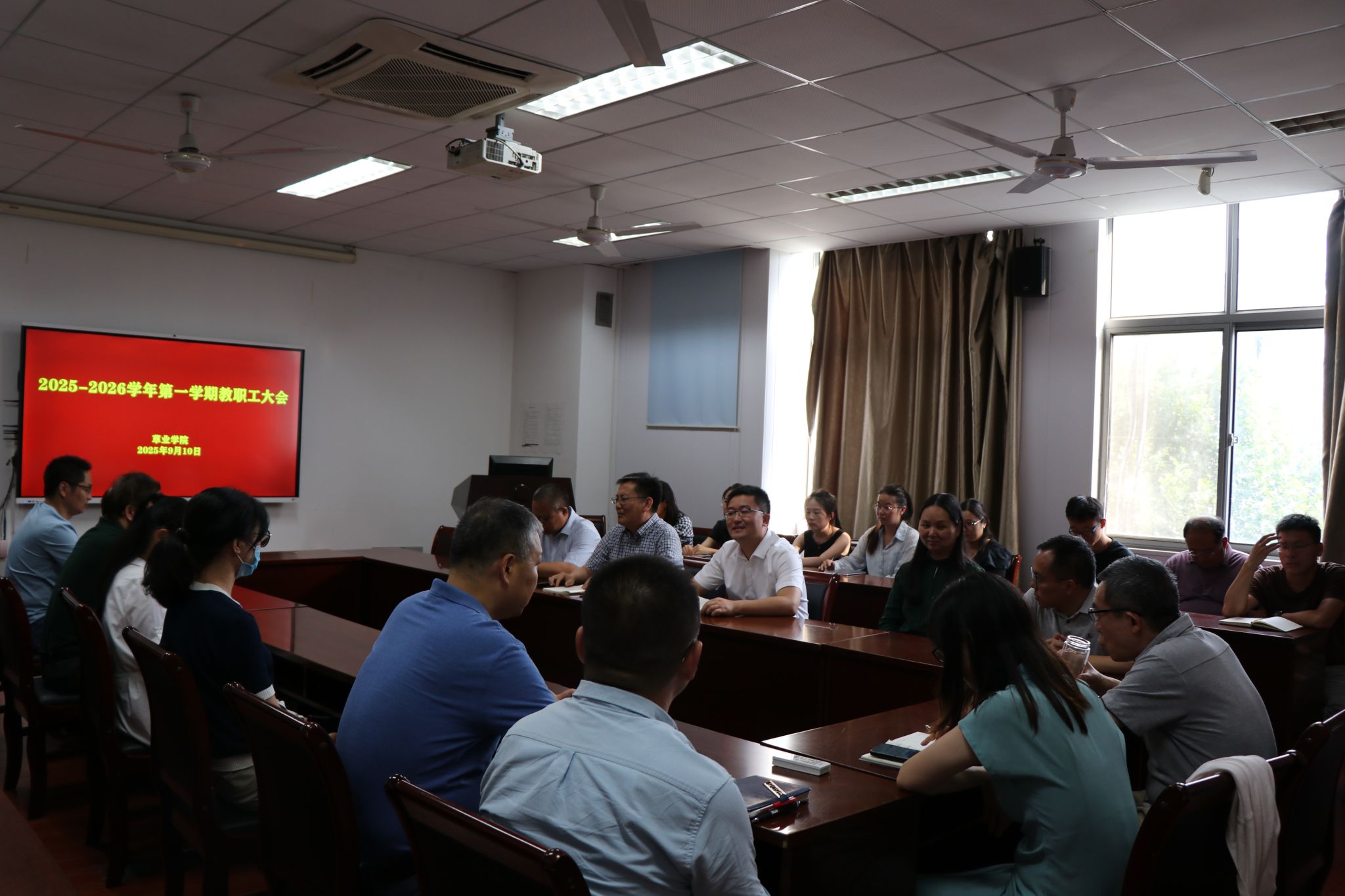 全体教职工参加会议。会议由学院党委书记戴廷波主持。