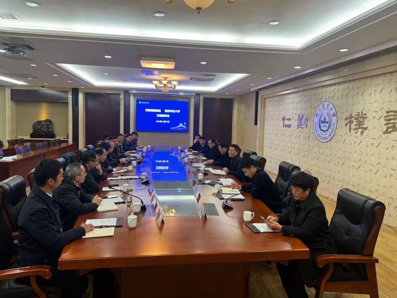 韦中副院长(主持工作)介绍了临泉县与学校共建有机类肥料试验站开展的合作情况。该试验站已在临泉开展了多项国家和省部级科研项目,在打造产教研基础平台、农业科技推广应用等方面做出了积极贡献。下一步,试验站将进一步整合资源,把最新的科技成果融入临泉县现代农业生产中,并作为南农大和临泉县合作的纽带,带动其他领域的科研成果转化,造福地方农业发展。