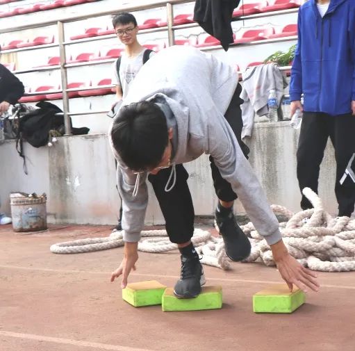 (4)发现运动员用脚触及地面,则判犯规,小组重回起点。