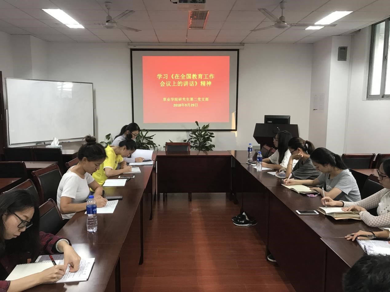 研究生第二党支部在理科南楼F304召开组织生活会,主题为学习全国教育大会会议精神。研究生第二党支部全体研究生党员参与了本次会议,会议由党支部副书记陈春同志主持。