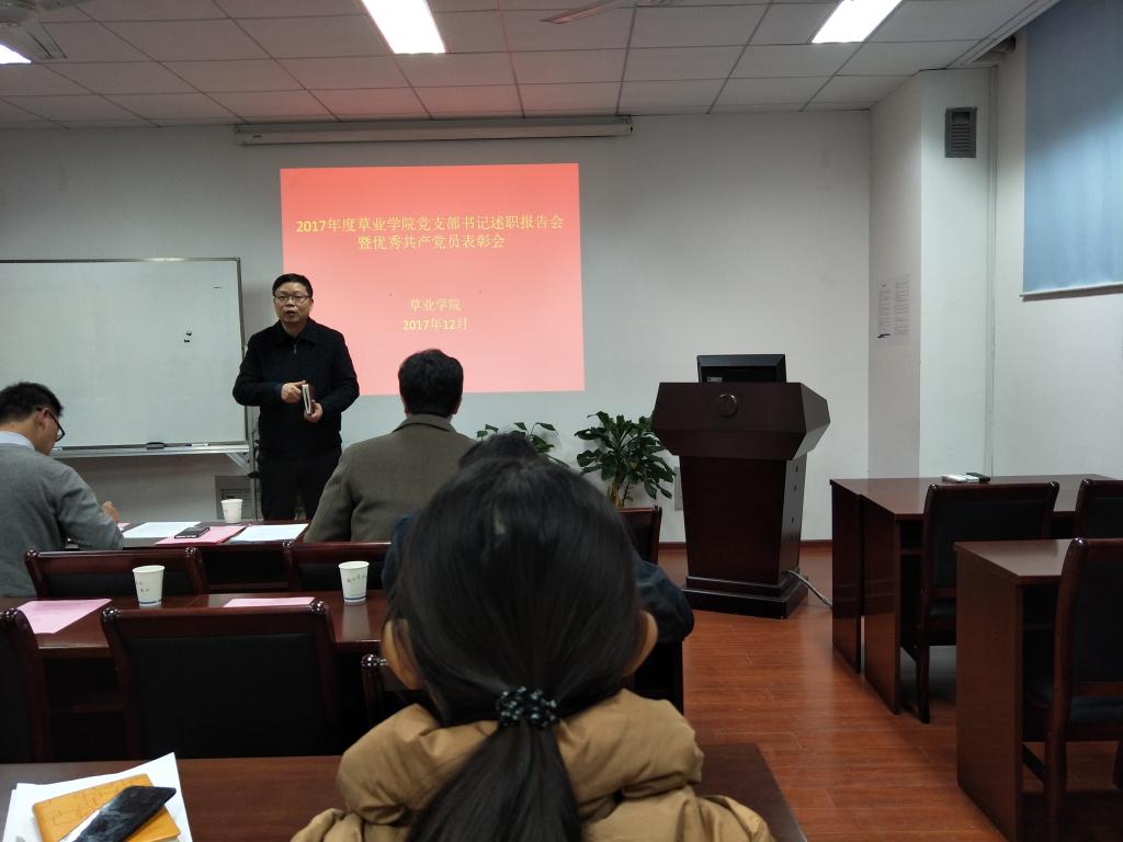 于理科南楼F306召开2017年度党支部书记述职报告会暨优秀共产党员表彰会,会议由李俊龙书记主持,校党委组织部史文韬老师莅临指导,H动漫