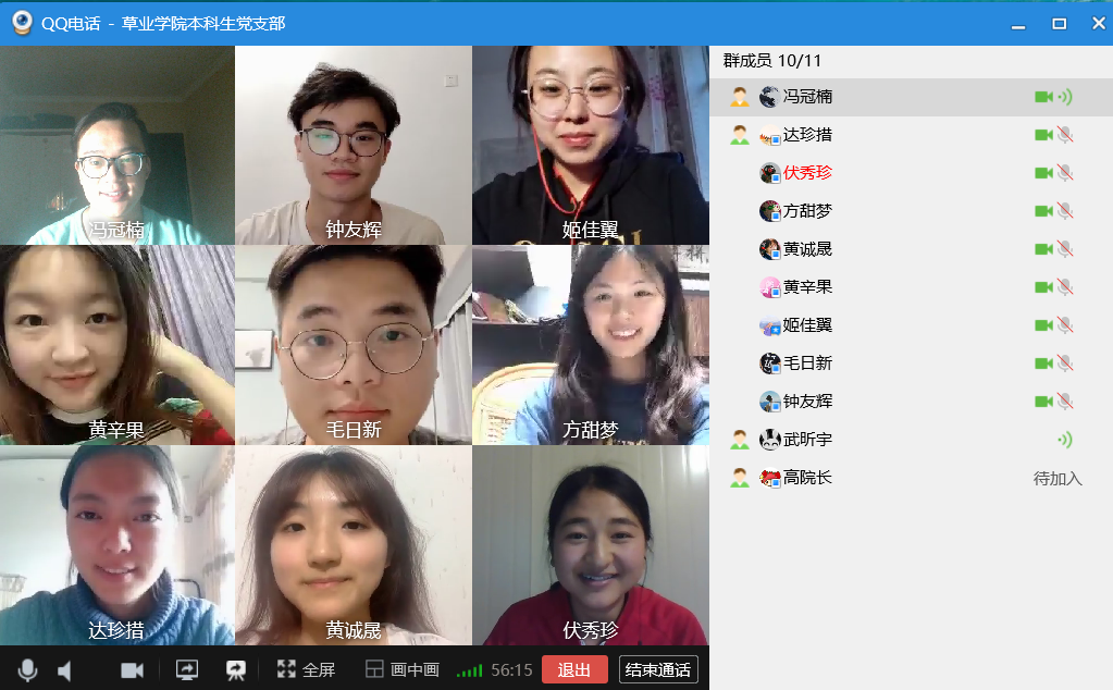 本科生党支部利用QQ视频召开了线上学习会,应到党员10人,实到党员10人,本科生党支部书记武昕宇主持了本次大会。