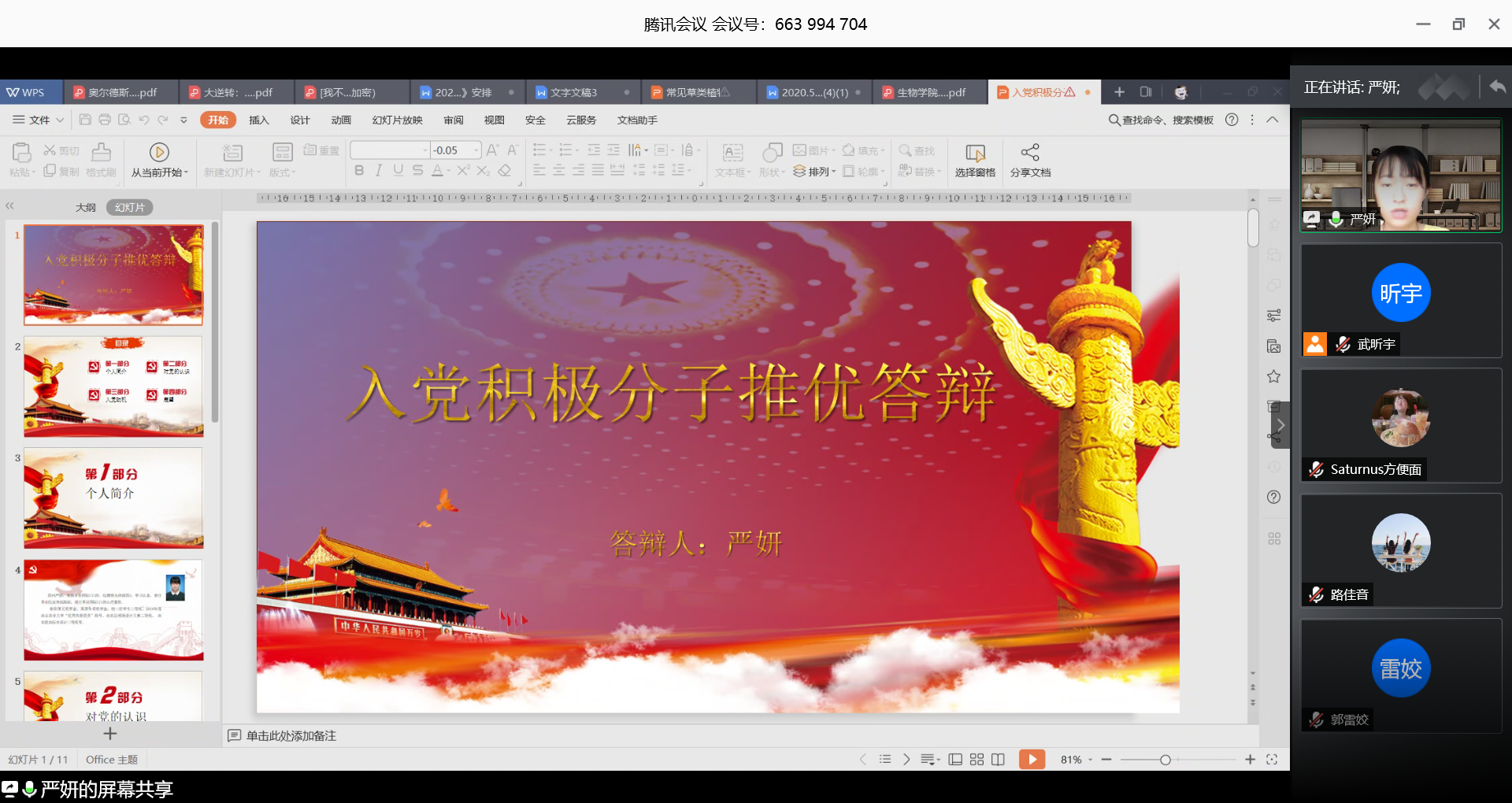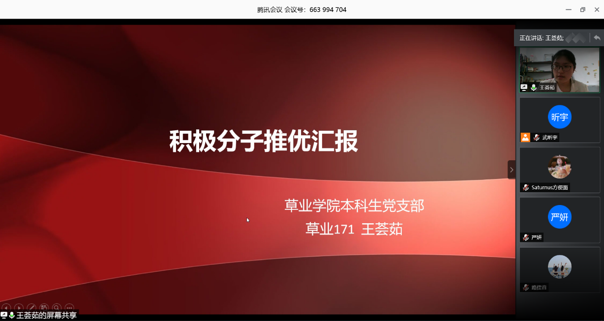 5月20日下午2点,H动漫 本科生党支部利用腾讯会议软件召开了本科生党支部发展预备党员会议,武昕宇书记主持会议。