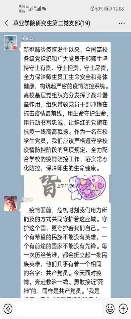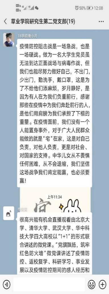 研究生第二党支部开展线上学习会议,观看首场高校党组织战“疫”示范微党课。研究生第二党支部全体党员参与了本次线上学习,此次学习会议由党支部副书记羿明璇同志主持。