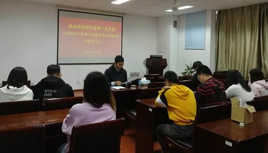 研究生第一党支部在理科南楼F304召开支部会议。此次会议采取线下和视频线上结合的方式进行,主要学习了《中国共产党第十九届五中全会精神》。会议由张敬同志主持,出席本次会议的党员12名,其中线上参会党员1名。