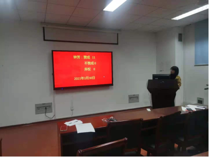 最后,11位正式党员进行无记名投票,表决结果如下:本支部共有党员14名,实到14名,有表决权的党员11名,经无记名投票表决,钟芳同志11票。最终一致通过接收钟芳同志为预备党员的决议。