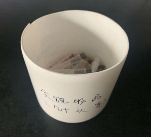 赵娜老师和郝田同志发现大家在扔实验室废弃物的时候没有做好软硬垃圾的分类,吴佳璇同志发现大家会将玻璃废弃物扔到专门盛放硬塑料的垃圾桶里。