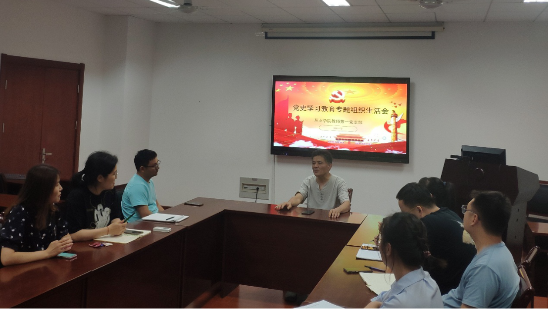 教师第一党支部在理科南楼F304会议室召开习近平总书记在庆祝中国共产党成立100周年大会上的重要讲话学习及党史学习教育专题组织生活会,学习回顾七一重要讲话精神,开展党史学习专题党课,总结党史学习工作成效。党支部书记邵涛教授主持会议。