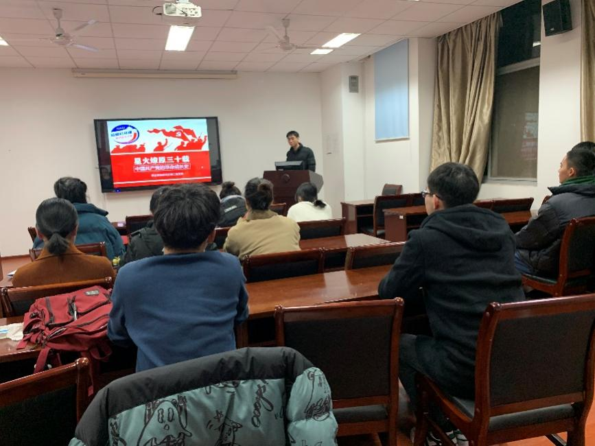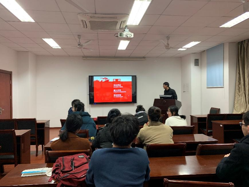 研究生第二党支部召开了微党课专题学习会议。此次会议由党支部副书记陶亭亭同志主持,杨鑫同志带领大家学习了“星火燎原三十载—中国共产党的革命成长史”