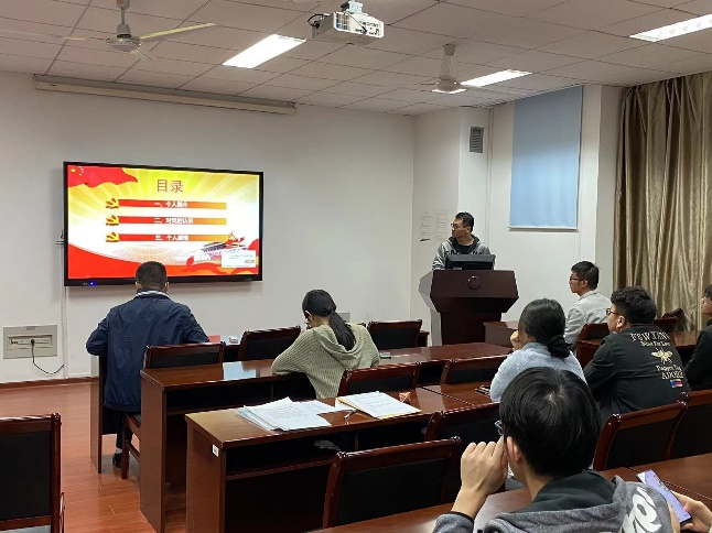 韩哲和许国峰等积极分子依次进行PPT汇报,从各自思想、学习、工作情况等方面向党组织进行汇报。