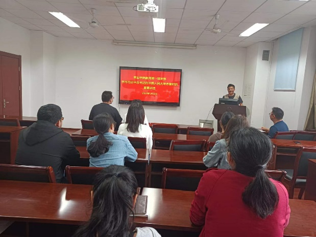 教师第一党支部在理科南楼F304召开支部党员大会,学习习近平总书记在中国人民大学考察时的重要讲话。此次会议由教师党支部书记邵涛教授主持,出席此次会议的党员共10人,入党积极分子1人。