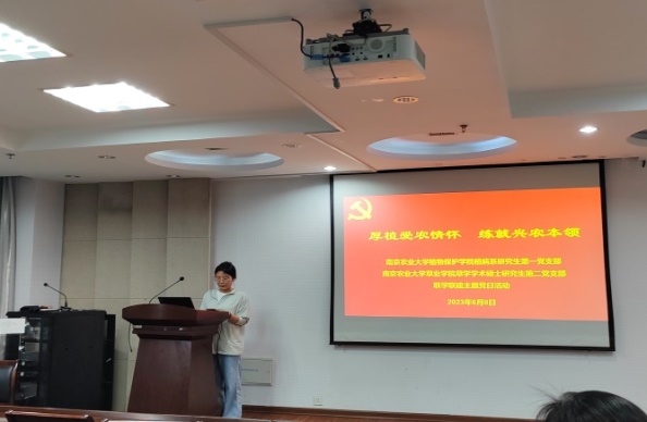 首先由植物保护学院植病系研究生第一党支部同志进行理论学习,学习内容是习近平总书记29日在中共中央政治局第五次集体学习时的重要讲话,强调:“建设教育强国,是全面建成社会主义现代化强国的战略先导,是实现高水平科技自立自强的重要支撑,是促进全体人民共同富裕的有效途径,是以中国式现代化全面推进中华民族伟大复兴的基础工程。”习近平总书记的重要讲话,阐明了建设教育强国的重要意义,指明了教育强国建设的前进方向。广大师生和教育工作者表示,要以习近平总书记重要讲话为指引,积极投身教育强国实践,为全面推进中华民族伟大复兴提供有力支撑。