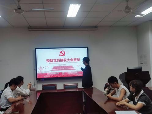 党支部同意接收唐梦圆、钱翠微、刘航、林欣瑶、韩诗琪六位同志成为中共预备党员。最后,党员为五位预备党员佩戴党徽,并一起进行了宣誓。