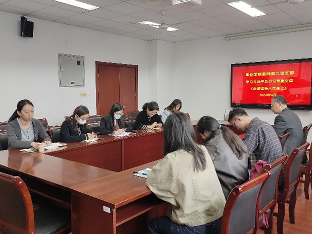 教师第二党支部在理科南楼F304召开了党纪学习教育习近平总书记《必须坚持人民至上》专题学习活动。支部书记张风革主持会议。