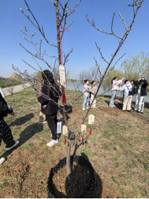 经过辛苦劳动,一棵棵树苗深深扎根于这片土地上。老师和同学们纷纷在树牌上写下美好的祝福与希望,并将他们挂在新植的树木上。小树迎风站立,仿佛在向我们致以诚挚的谢意。大家看着刚刚植好的树木,每个人的脸上都洋溢着幸福的笑容。