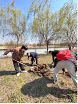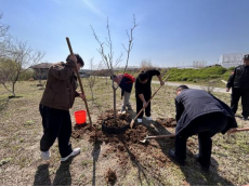 活动一开始,大家每4人为一组,分成8个小组,领取树苗和工具。在基地工作人员的指导下,大家开始了植树活动。活动中,大家纷纷发扬雷锋精神,不怕苦、不怕累,分工明确、协同高效。有的挥锄挖坑、有的扶树填土、有的浇水灌溉,每个环节都进行得有条不紊。大家用实际行动践行着新时代雷锋精神,展现出了新时代教师和青年学生的亮丽风采。
