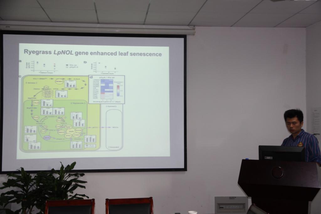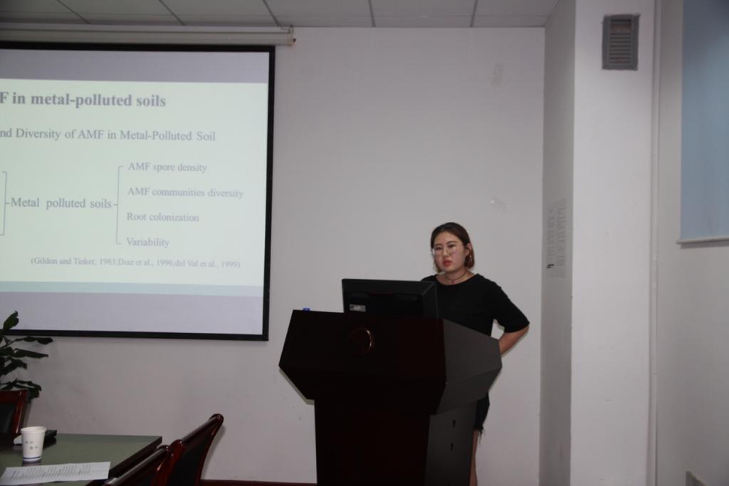 随后,今年的毕业博士生桂维阳和余国辉分别为大家做了精彩报告,聆听报告的老师和同学与两位汇报人交流频繁。例如,桂维阳详细解答了同学们比较关切的‘如何进行多重比较分析’及余国辉解答了同学们提出的‘叶片衰老和叶绿素降解之间的关系’等问题。最后一位是本院优秀硕士毕业生、国家奖和王栋奖奖学金获得者刘沫含同学,她汇报的题目为“丛枝菌根真菌对金属污染土壤的植物修复作用”,研究着眼于热点,内容新颖丰富,给大家带来了一场精彩的分子生态学学术报告。