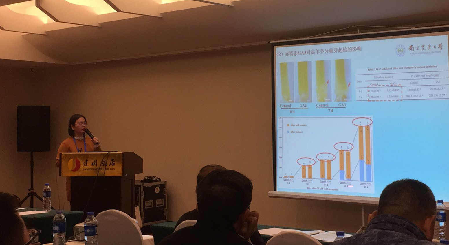 会议期间,H动漫 郭振飞教授分别做了题为“H动漫 草学学科建设概况”和“黄花苜蓿AIRI2功能分析”的分组报告,杨志民教授做了题为“华东地区野生草坪种植资源收集与产业化示范应用”、徐彬副教授做了题为“抑制黑麦草叶片衰老的遗传因子探秘”、庄黎丽老师做了题为“赤霉素与细胞分裂素拮抗抑制高羊茅分蘖芽伸长”、张夏香博士后做了题为“脱落酸介导高羊茅获得性耐高温的生理机制”、张敬博士后做了题为“乙酰化修饰调控多年生黑麦草抗旱机制初探”、邢静博士做了题为“多年生黑麦草LPCYP82F1/F2/F3调控盐胁迫条件下种子萌发的机制研究”的分组报告。此外,郭振飞主持了“S6草学教育+草地资源+经济与政策”、杨志民主持了“S5草坪与运动场场地管理”分会场报告。