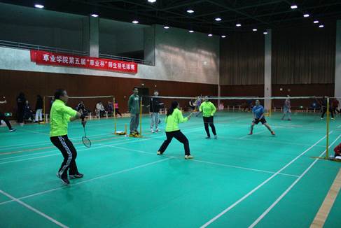 体育中心三楼羽毛球馆举行了“草业杯”师生羽毛球赛。此次比赛分为正赛与趣味赛两个部分。有近50名师生参与到本次羽毛球大赛。