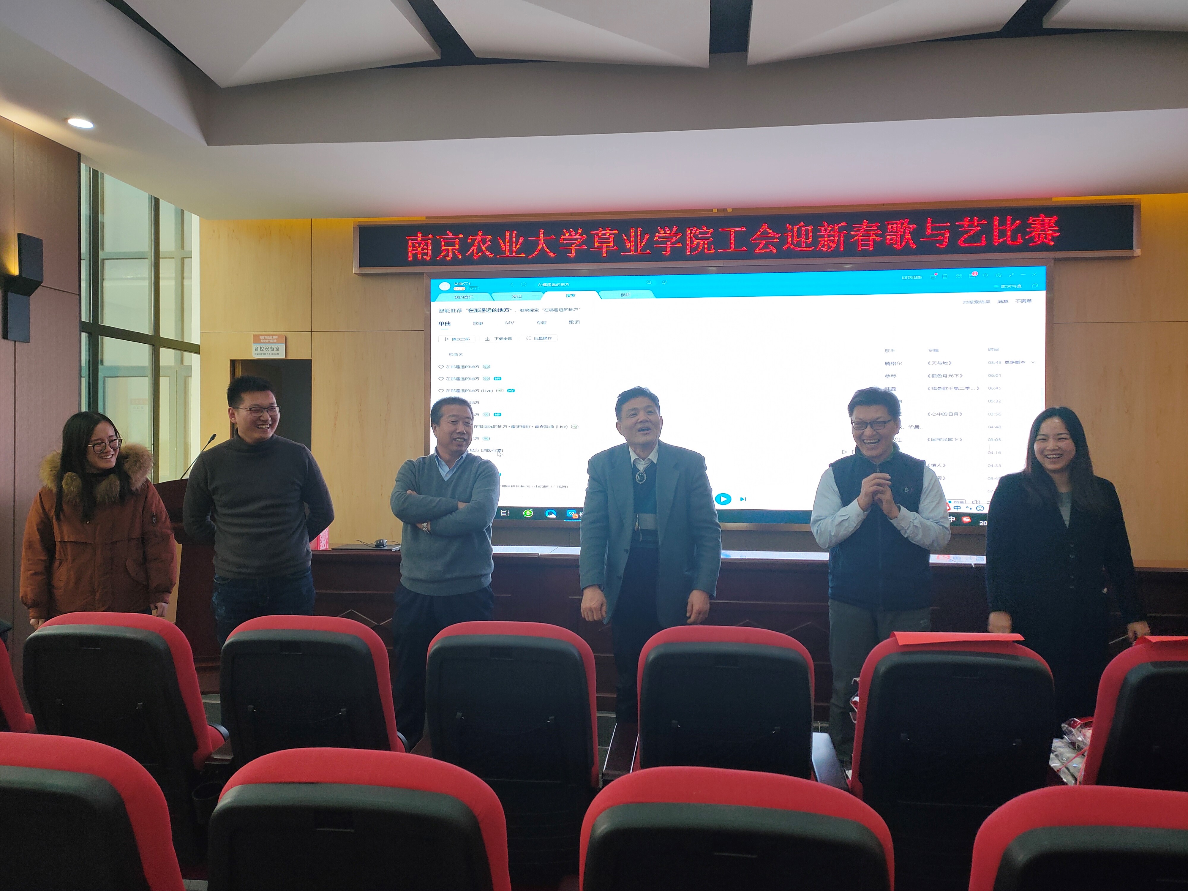 2020年1月18日下午,H动漫 工会在H动漫 句容草坪研究院举办“春风吹又生”2020年迎新春歌与艺比赛活动。学院党总支书记李俊龙、院长郭振飞,副书记、副院长高务龙出席活动,学院全体教师参加了活动。