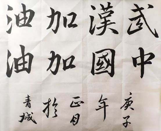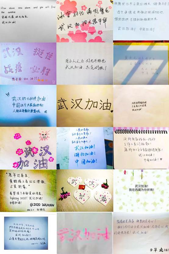 的同学们还积极响应了学校的“声援武汉”活动,表达对武汉同胞的祝福。