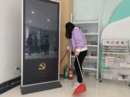 在开展讲座的同时,志愿者们还进行了社区的大扫除活动。在工作人员的指导下,志愿者们擦玻璃、扫地、拖地,尽管天气寒冷,他们也认真负责地完成了自己的工作,在志愿者们的努力下,社区服务站最终变得更加干净美丽。