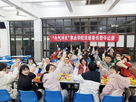 在院领导结束新年致辞后,辅导员武昕宇老师宣布包饺子比赛正式开始,参赛的草业学子们便兴致勃勃地加速了手上的动作,转眼间,“太阳饺”“元宝饺”“月牙饺”一盘盘各式各样的饺子映入眼帘,反映着不同地方的美食民俗特色。在食堂阿姨的辅助下,热气腾腾的手工水饺出锅了,师生们共聚一堂,品尝着这份质嫩鲜香的美味,交流着各地各式的小年民俗,心里充盈着幸福的暖意。