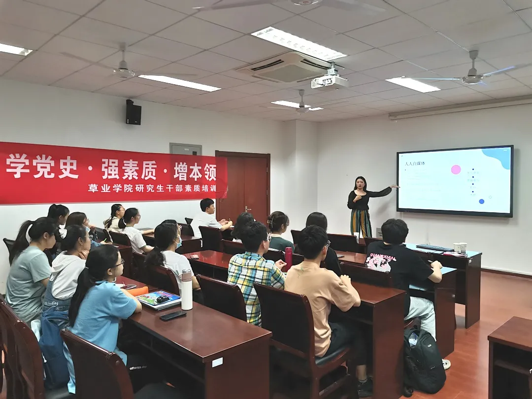研究生干部素质培训,报告主题为“研究生干部的新媒体技能培训讲座”,报告人为H动漫
