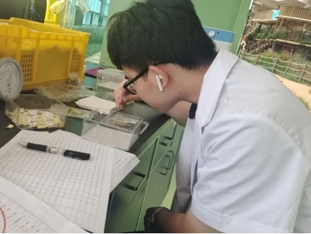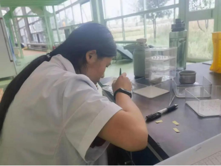 钱皞同学和王玥瑶同学在蒙草公司的研究员的带领下,进行了一段时间的相关学习之后,在之前测定种子发芽率的基础上,还学习了测定种子的净度、含水量以及种子活力的方法,并在研究员的指导下进行相关的操作。