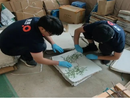 黄孜同学和吴茂盛同学在制作植物标本