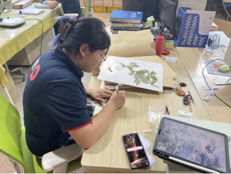 在王六英老师的带领下,2组实践团成员学习了如何进行标本的鉴定,并对不同植物的形态特征有了更加深入的了解。之后在高雅倩老师的带领下,实践团成员采集了新鲜植物,并制作了植物标本。在制作标本时,同学们根据所学的植物鉴定的相关知识,有选择地除去植物上多余的枝叶、调整植物姿态,使制作出的植物标本便于后期的观察和鉴定。