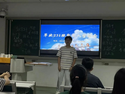 草业231班的同学们轮番上台,在台上写下自己的姓名,并通过姓名、家乡、家乡特色和特长爱好等方面展开了自我介绍,自我介绍后拉近了同学们之间的距离。