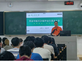党委副书记、副院长高务龙,院团委书记、辅导员武昕宇为2024年毕业的本科生、研究生同学上了一堂就业形势分析课,为即将面向社会就业或升学的同学明确了努力方向。