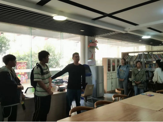 接着同学们来到服务活动中心参观各种设施,团工委试用科员汪晖介绍了社区开展的各种送爱心活动,同学们对于社区开展的各种活动产生了浓厚的兴趣,此外同学们还参观了建立在小卫街社区服务中心的金陵图书馆分馆,浏览了其中的一些书籍。
