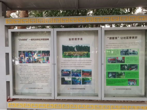 小卫街社区党委书记张晔带领同学们参观了小卫街社区党群服务活动中心宣传板报,并且从基础设施到活动开展等方面进行详细的讲述,让同学们对小卫街社区有了基本的了解。