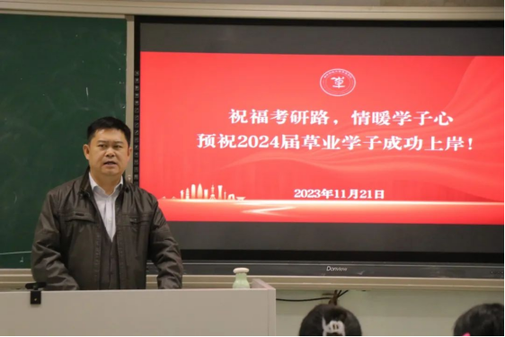 李俊龙书记向在座的同学提出了两点希望:第一,希望大家咬紧牙关、抓紧时间巩固知识,争取在研究生初试、国家公务员考试以及后续的各类考试中取得好的成绩;第二,希望大家有一个良好的精神和身体状态,考试不仅是考知识还考体能和毅力。最后,李书记对考研的学子们送上了祝福,希望广大草业学子都能成功上岸。