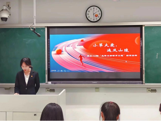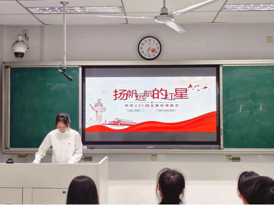 刘明慧同学以”小草大爱,遍及山陵“为主题进行汇报,主要从年度工作回顾、特色活动展示、工作成果展示、存在问题分析四个方面分别介绍了草业222团支部的工作成果,其中”探索钟山,植物文创“特色活动不仅增强了同学们的实践能力和对不同植物的辨别能力,而且让同学们感受到钟山的历史底蕴,学习先辈们的奉献精神。