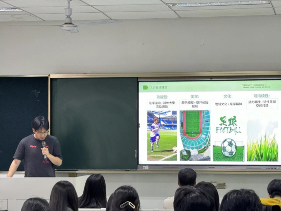 在决赛现场,各位参赛选手展现出了非凡的专业素养和规划设计能力。他们讲解时条理清晰、生动有力,所提出的昆山亚洲杯主场地设计方案既科学又富有创意,充满了独特的魅力。在面对评委老师们的提问时,选手们能够迅速反应,并运用他们的专业知识灵活应对,每一次的回答都将比赛推向了新的高潮。整个比赛过程紧张、刺激,但也彰显着同学们对运动场规划设计的热爱与追求。