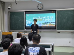 草坪241班团务助理刘航向同学们介绍了自己以及团委和学生会的情况,并为团委和学生会招新作了宣传,强调了在大学中学习的重要性——大学期间应当把学习放在首位。