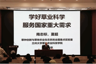 南志标重点围绕草业科学领域前沿研究,从什么是草业科学、为什么学草业科学、如何学好草业科学等方面作了精彩报告。他指出,草业科学是一门前沿性强、多学科交叉的专业,同时也是应用性强、服务全产业链的纽带,是最有朝气的产业与学科。他强调,伴随着可利用资源不断减少、化石能源投入过高等问题,以及全球变化、食物安全、可持续发展、生态服务等需求,迫切需要我们要学好草业科学,运用草业科学知识服务经济社会发展。他说,本科教育的核心是通识教育,重要的是培养学生的独立思考能力,提高综合素质,为终身学习奠定基础。他结合青年学生如何养成良好的综合素质,从道德素质、文化素质、实践素质、专业素质、身体素质等五个方面对同学们的健康成长成才提出了意见和建议。