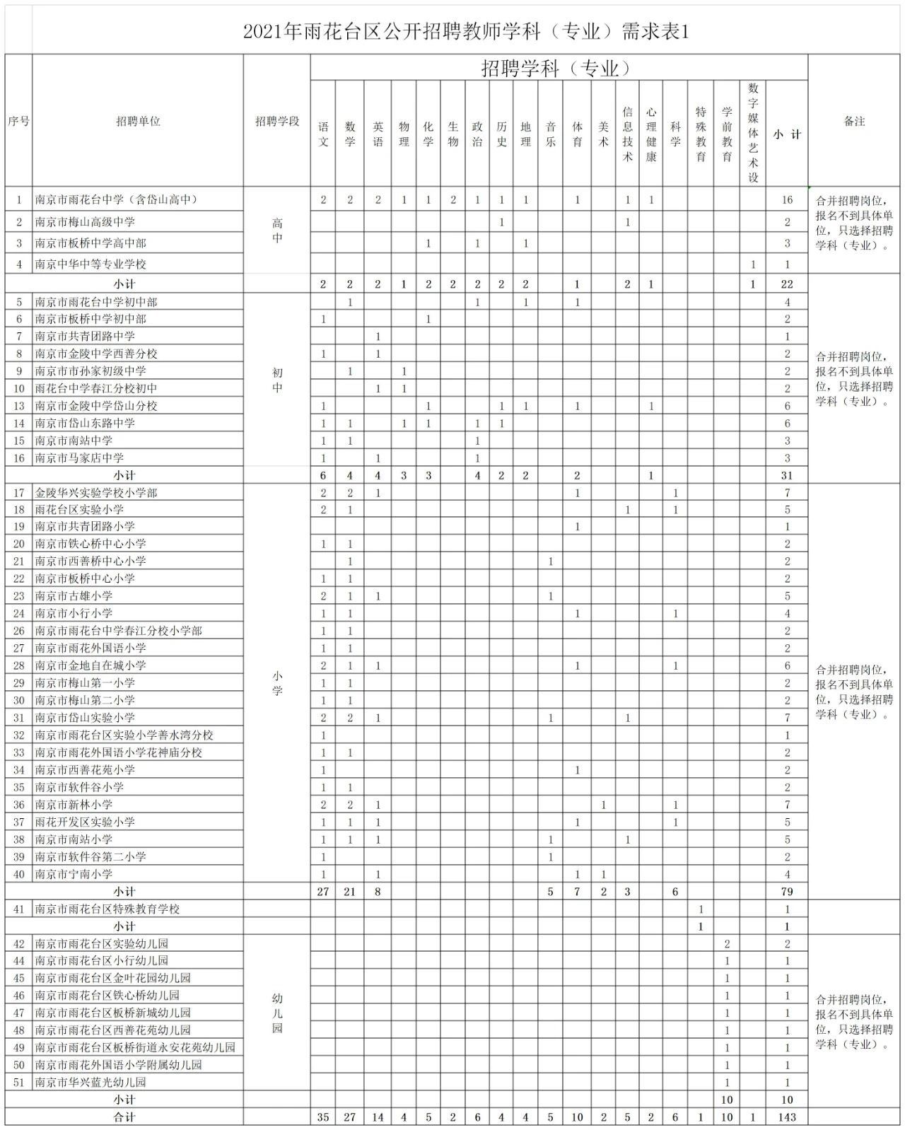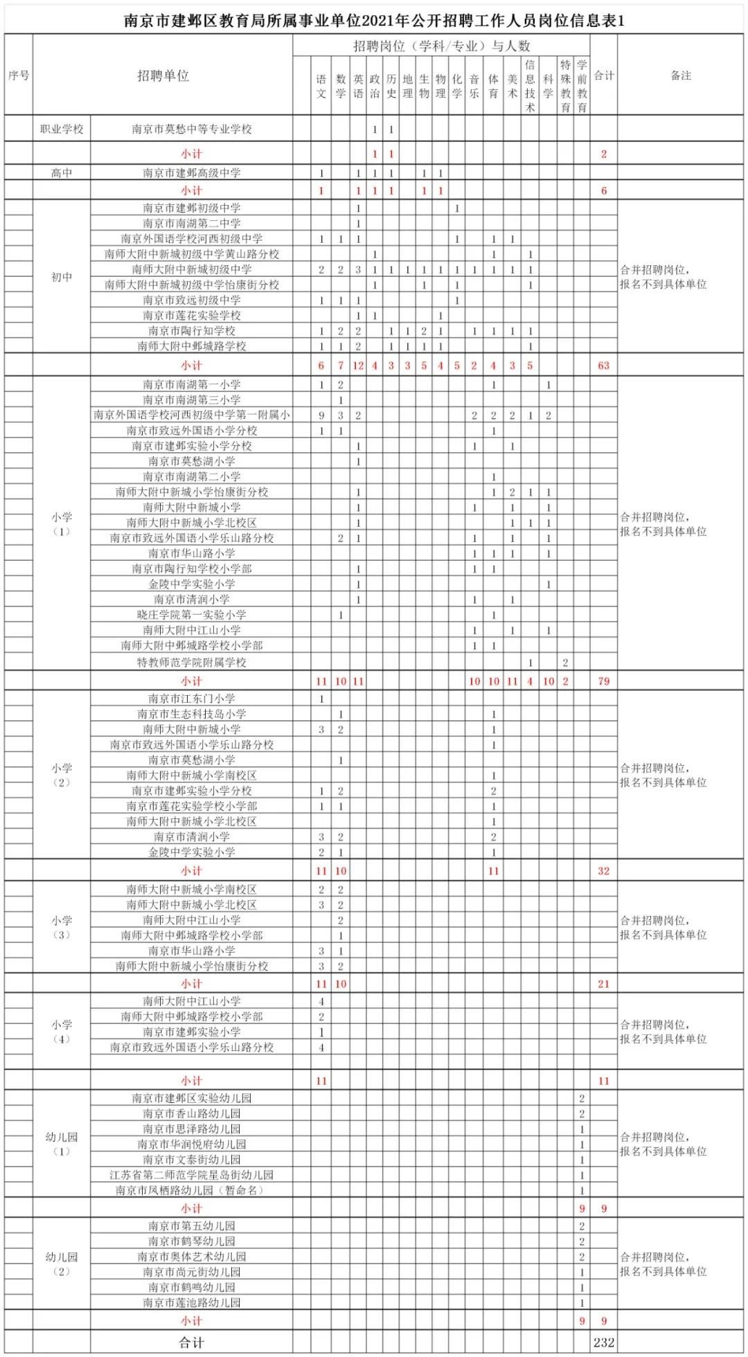 根据招聘岗位需求,此次南京市教育局所属12所学校招聘62名编制内教师;鼓楼区招聘156名编制内新教师;玄武区招聘160名编制内教师;秦淮区招聘130名编制内教师;建邺区招聘266名编制内教师;雨花台区招聘225名编制内教师。招聘范围包括高中、初中、小学、幼儿园以及职业学校。