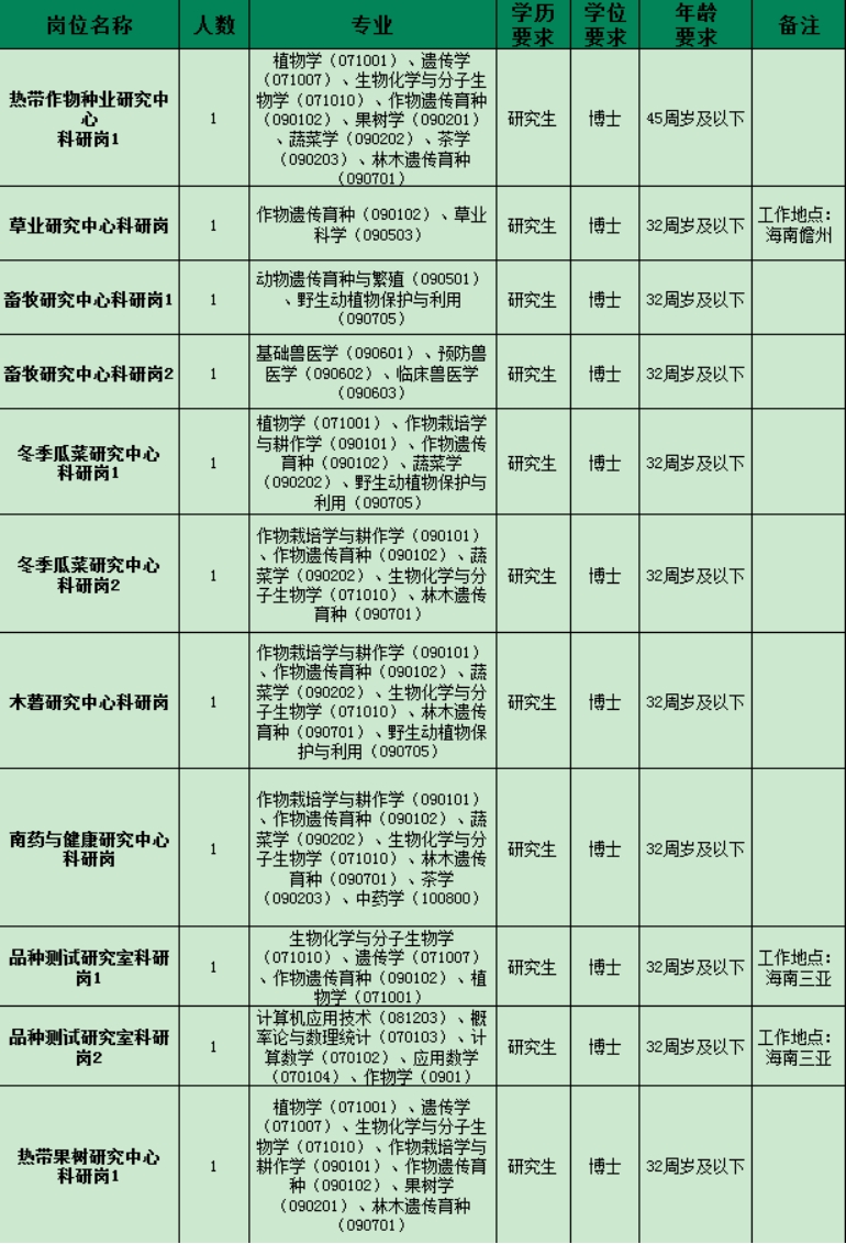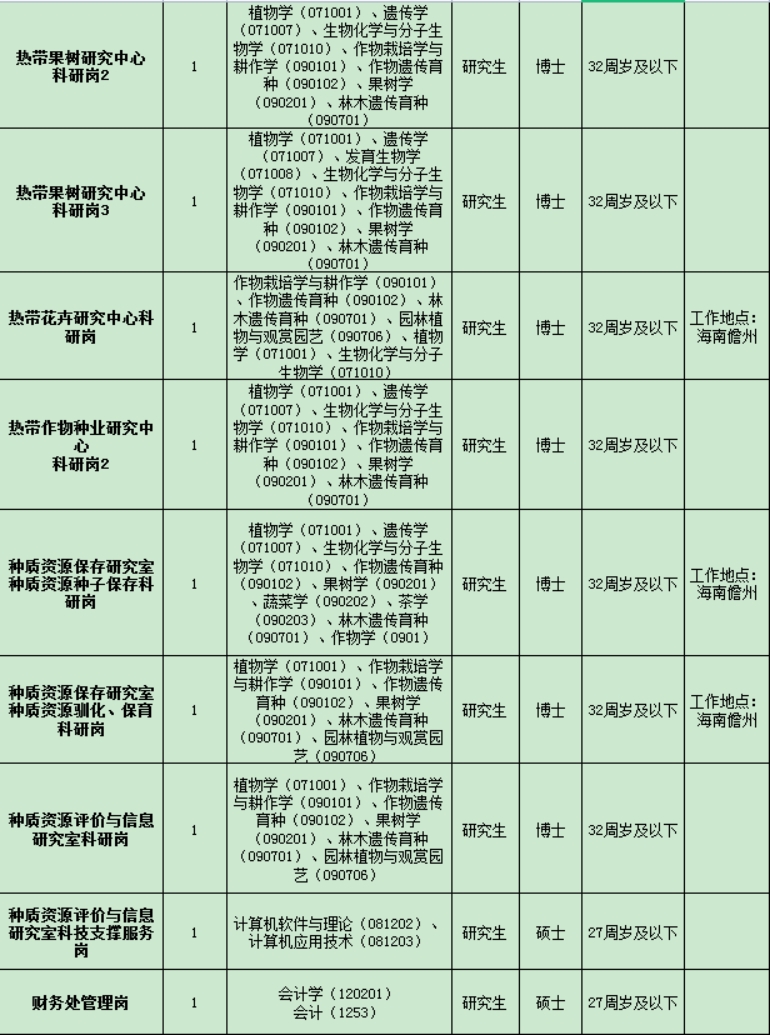 中国热带农业科学院热带作物品种资源研究所2023年诚聘英才